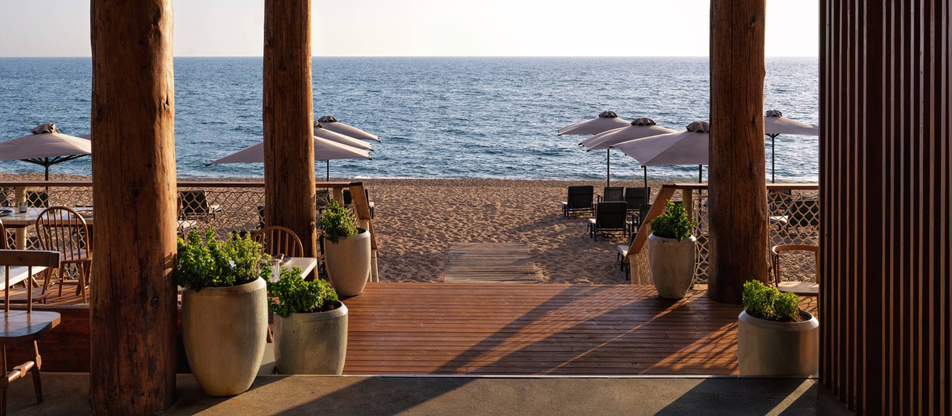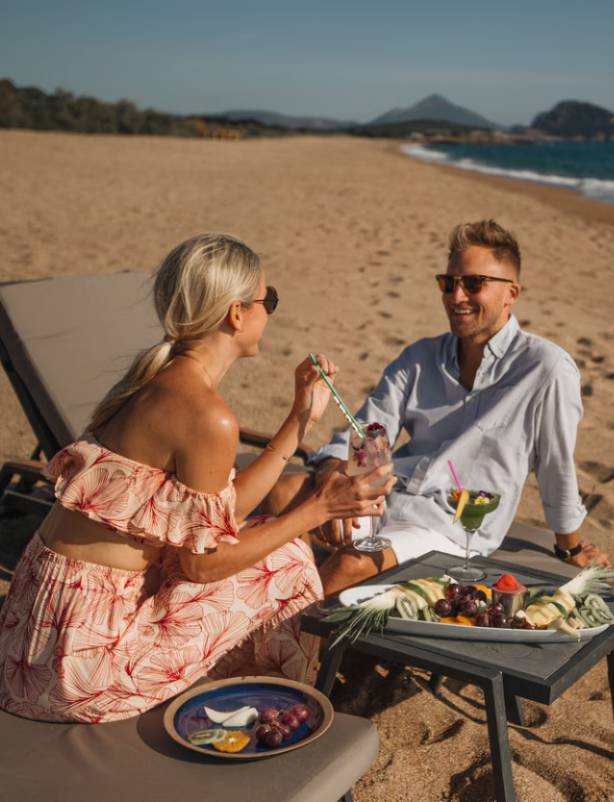 Washed by the sparkling blue waters of the Ionian Sea, The Dunes Beach stretches for 1 km under the warm glow of the Messinian sun. This sandy, west-facing beach, with cozy sun loungers and umbrellas, offers the ideal setting to leisurely enjoy our special beach menu, along with cool beverages and refreshing cocktails.